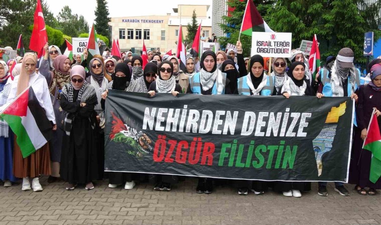 Filistin’e Destek Platformu tarafından Karabük’te İsrail’in Filistin’deki katliamlarına tepki göstermek için yürüyüş programı düzenlendi. Karabük Üniversitesi Sosyal Yaşam Merkezi önünden başlayan yürüyüşte katılımcılar tekbir getirerek ‘Katil İsrail Filistin’den Defol’, Siyonist Katiller Hesap Verecek’, ‘Türkiye ve Gazze’de Teröriste Geçit Yok’ sloganları attılar.