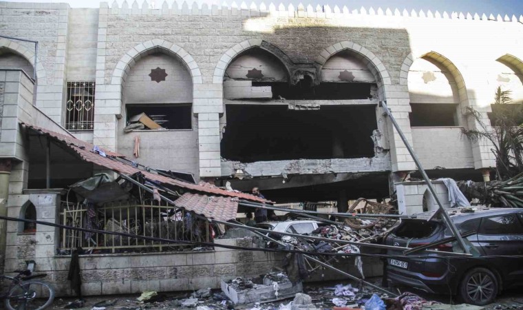 Saldırının ardından görüntülenen okulda, Filistinlilerin sabah namazı için toplandığı bölümde büyük yıkım meydana geldiği görüldü.