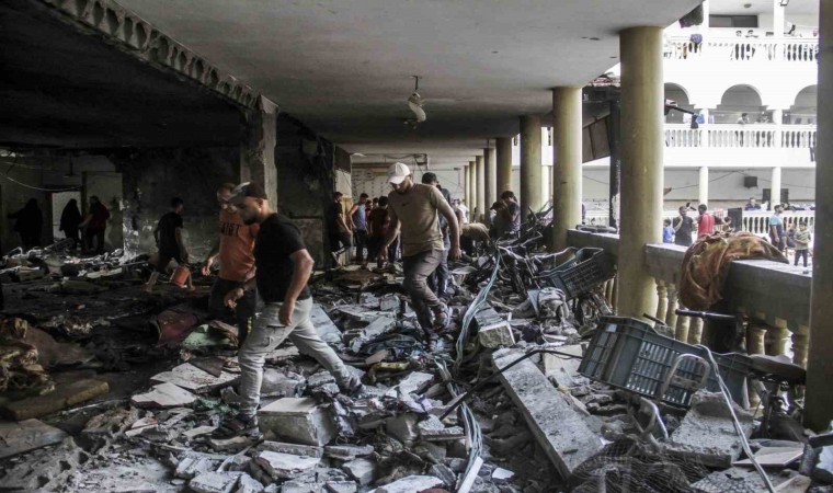 Gazze’deki hükümetin Medya Ofisi, İsrail’in Gazze şehrinde sabah namazı sırasında vurduğu ve 100’den fazla Filistinlinin hayatını kaybettiği El-Tabin Okulu’na her biri 907 kilogram ağırlığında 3 bombayla saldırdığını ifade etti. Okuldaki meydana gelen büyük yıkım görüntülendi.