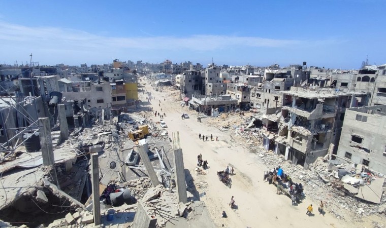 İsrail ordusunun geri çekildiği Gazze Şeridi’nin Han Yunus kentindeki yıkım görüntülendi.