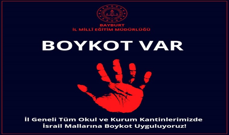 Bayburt Belediyesinin boykot kararı almasının ve vatandaşlara İsrail menşeili ürünleri kullanmamaları çağrısında bulunmasının ardından boykot kampanyasına bir destek de Bayburt Milli Eğitim Müdürlüğünden geldi. Okul kantinleri ve kurum kantinlerinde İsrail menşeili ürünlerin alınıp satılmayacağı kararı alan Bayburt İl Milli Müdürlüğü sosyal medya hesabından ’Boykot Var’ başlıklı yazılı açıklamada bulundu. Milli Eğitim Müdürlüğünün boykot kararı aldığı yazılı açıklamasında şu ifadeler yer aldı: "İl Milli Eğitim Müdürlüğümüze bağlı okul ve kurum kantinlerimizde boykot edilen ürünler hiçbir şekilde alınıp satılmayacaktır. Kamuoyuna saygıyla duyurulur."