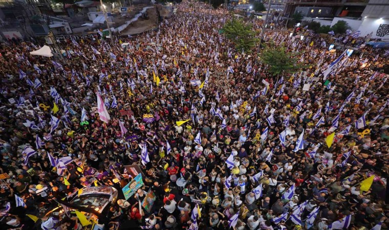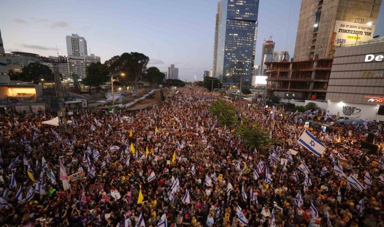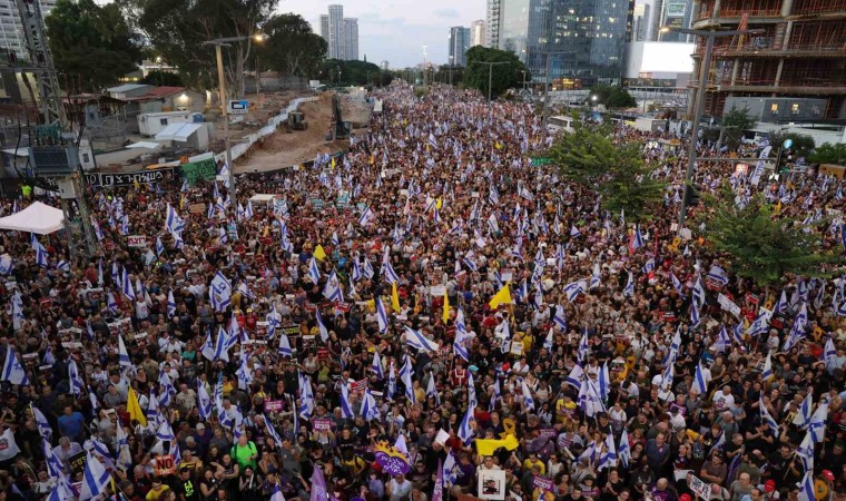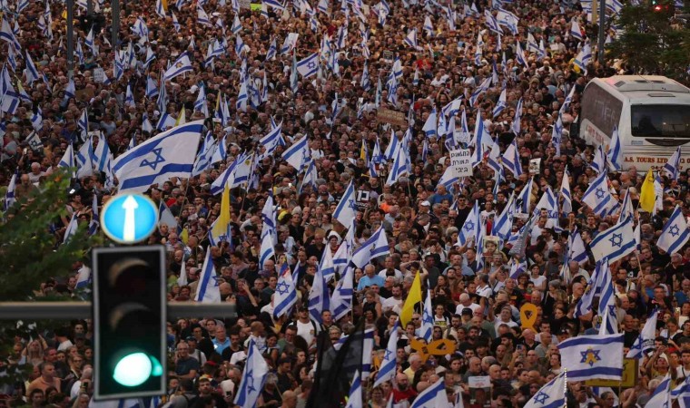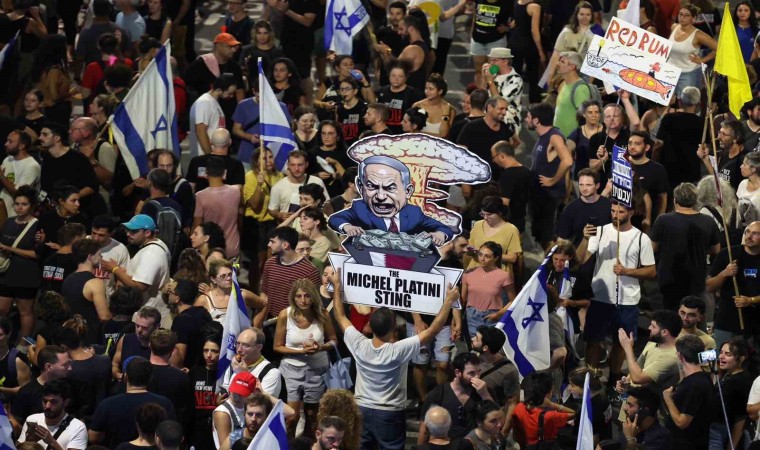 İsrail’de binlerce kişi hükümet karşıtı protesto gösterisinde bir araya geldi. Gazze Şeridi’nde bugün 6 esirin daha cansız bedeninin bulunmasının ardından İsrail Başbakanı Binyamin Netanyahu ve hükümetine öfke artarken, İsrailliler ateşkes ve esir takası anlaşması talebiyle sokaklara döküldü. “Her gün Netanyahu’nun Rus ruleti. Hepsi ölene kadar bu oyunu oynayacak. Ama biz buna izin vermeyeceğiz” sloganları atan İsrailliler, Netanyahu’nun anlaşmaya yanaşmamasına tepki gösterdi.