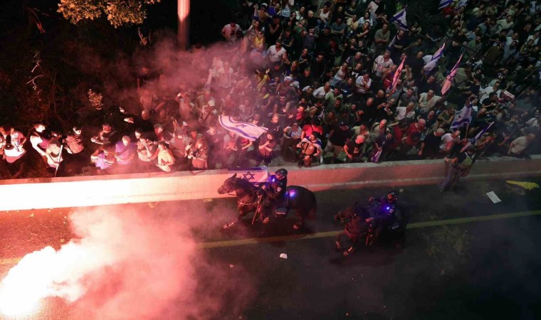 Başkentteki Ayalon otoyolunu trafiğe kapatan binlerce kişi, Netanyahu’nun ateşkes anlaşmasını kabul etmesi için sloganlar atarken, polis gösteriyi dağıtmak için tazyikli su kullandı. Çok sayıda gösterici otoyolda ateş yaktı.