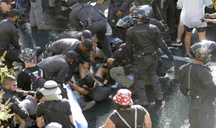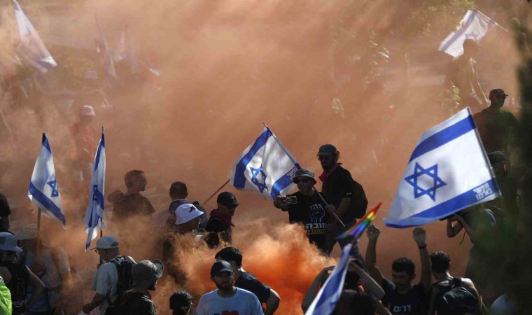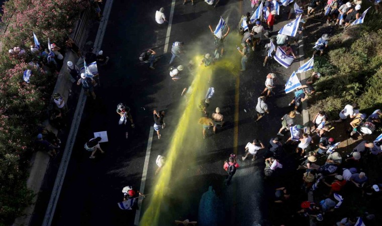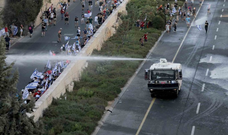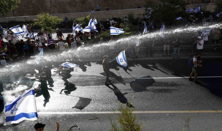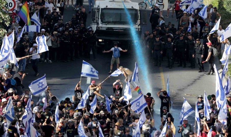 İsrail’de tartışmalı yargı reformu kapsamındaki Yüksek Mahkeme’nin yetkilerini sınırlandıran yasa tasarısının mecliste kabul edilmesinin ardından başta başkent Tel Aviv olmak üzere ülke genelinde protestolar patlak verdi. Ellerinde İsrail bayrakları olan göstericiler, birçok noktada polisle çatıştı. Tel Aviv’de Ayalon otoyolunu trafiğe kapatan göstericilere polis tazyikli su ve göz yaşartıcı gazla müdahale etti. Kudüs’teki Begin otoyolunu kapatan göstericileri ise polis kötü kokulu su sıkarak dağıttı. Tel Aviv’deki gösterilere katılan bir İsrailli ise, elinde Kuzey Kore bayrağı taşıyarak, İsrail’in diktatörlüğe doğru gittiğini ima etti.