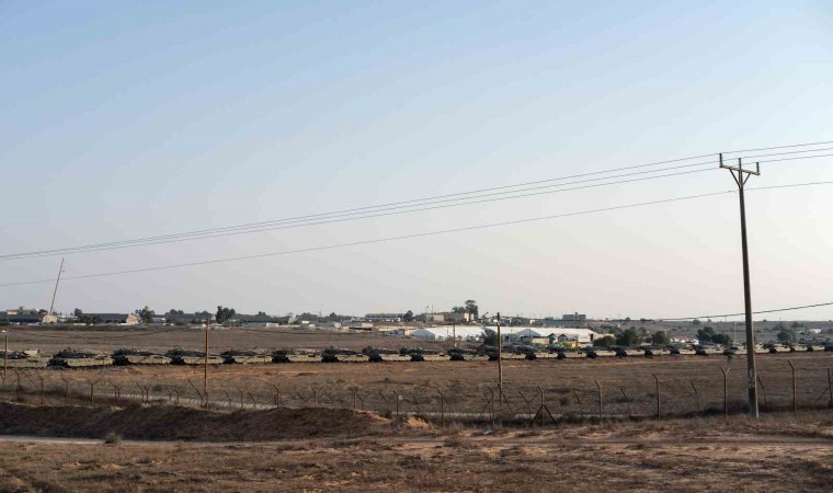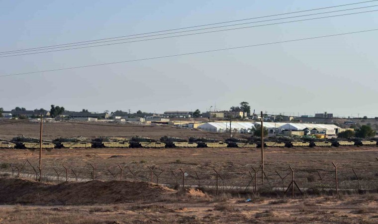 İsrail ordusuna ait çok sayıda tank Gazze Şeridi’ne yakın bir noktada sınırda bekletiliyor.