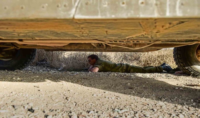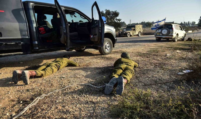 İsrail’in Gazze Şeridi sınırındaki Sderot kentine atılan roketler nedeniyle askerler yere yatıp siper aldı.