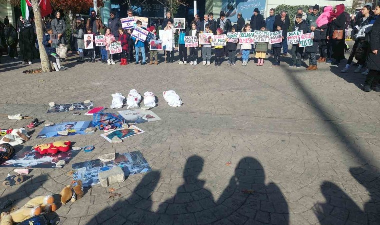 İsrail’in Gazze’ye saldırılarına yönelik tepkiler çığ gibi büyüyemeye devam ederken Tekirdağ’ın Süleymanpaşa ilçesinde de her hafta İsrail’in hain saldırılarına yönelik eylemler yapılıyor. İlçede bulunan Köprübaşında bir AVM’nin önünde aileleriyle toplanan vatandaşlar İsrail’in Gazze’ye yönelik saldırılarını protesto ederek saldırılardan etkilenen çocukların fotoğrafları, çanta oyuncak gibi birçok malzeme yere serildi. İsrail’in çocuklara saldırılara dikkat çekilmesi amacıyla malzemelerin hemen yanı başına ise bir kaç çocuk yere yatarak üzerlerine ise beyaz örtü serildi.