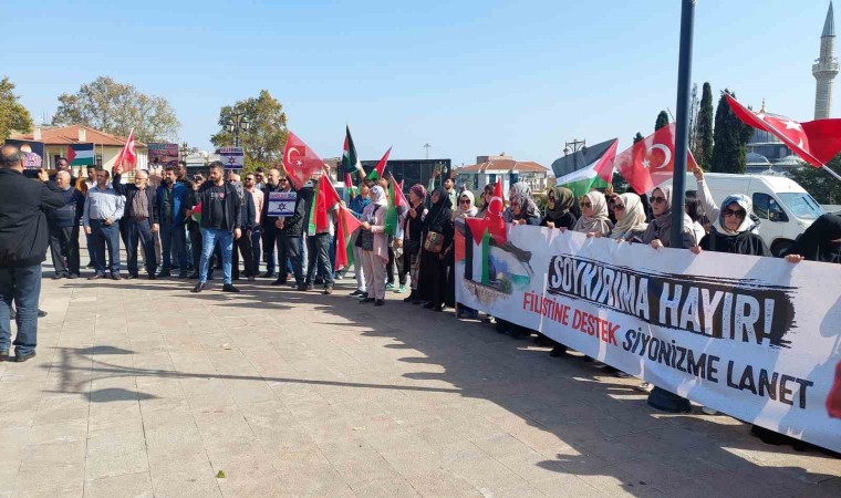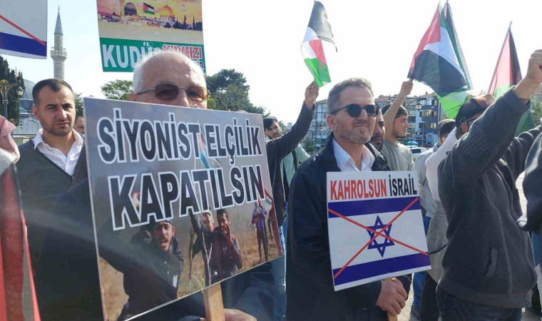 Gazze’ye saldıran İsrail’e yönelik tepkiler sürüyor. Tekirdağ’da cuma namazı çıkışı vatandaşlar, tepkisini dile getirmek için meydanda toplandı.