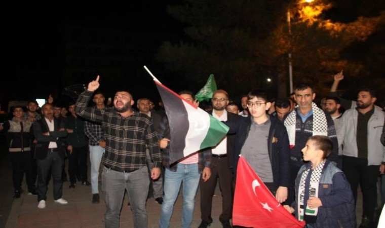 Hastanenin bombalanmasına tepki gösteren vatandaşlar, sloganlar atarak İsrail’e tepki gösterdi.