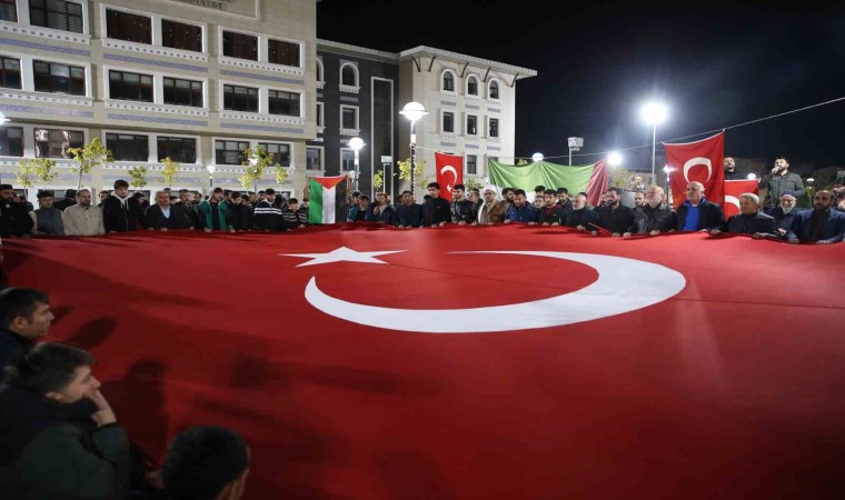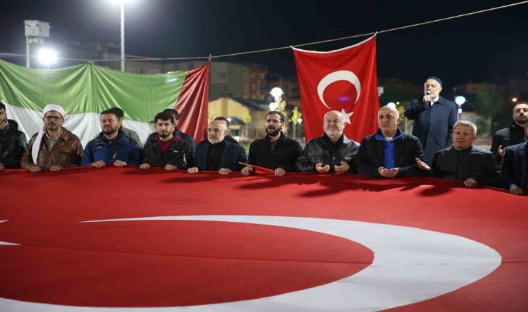 Vatandaşlar burada dev Türk bayrağını açarak, "Yaşasın Filistin", "Hamas’a selam direnişe devam", "Kahrolsun İsrail", "Zalimler için yaşasın cehennem", "Müslüman uyuma kardeşine sahip çık" ve "Kahrolsun siyonizm" sloganı attı. Daha sonra dualar edilerek, Kur’an’ı Kerim okundu. Protestoya katılan bazı kadınlar, gözyaşlarına hakim olamadı.