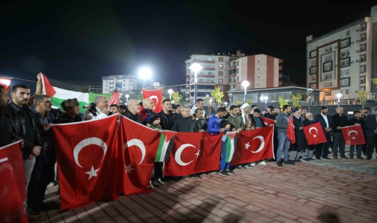 Muş’ta kent meydanında toplanan vatandaşlar, Gazze’deki El-Ehli Baptist Hastanesi’ne yönelik saldırıyı protesto etti.