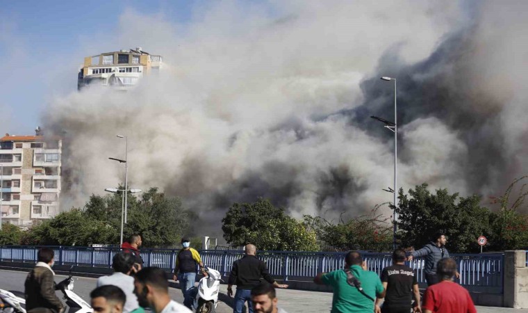 İsrail, tahliye çağrısının ardından Ghobeiry bölgesindeki bir binayı vurdu. İsrail’in füzeyle hedef aldığı bina yerle bir olurken gökyüzü toz bulutuyla kaplandı.