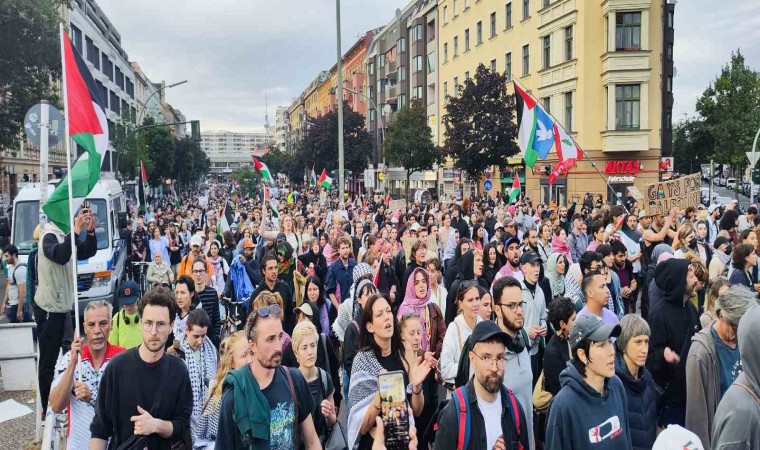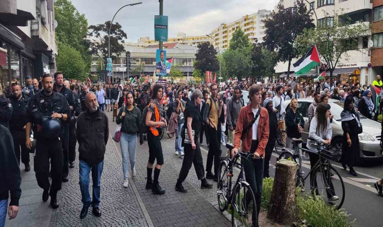 İsrail’in Refah’taki çadır kampa düzenlediği saldırı Almanya’nın başkenti Berlin’de büyük bir yürüyüşle protesto edildi.
