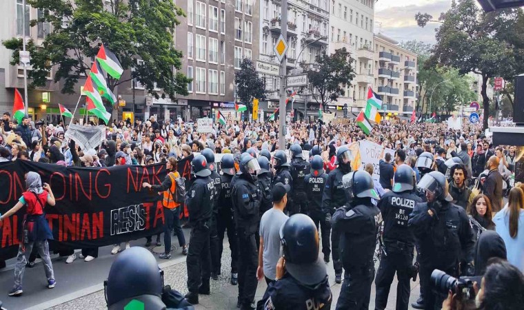 İsrail’in Gazze Şeridi’nin Refah kentindeki çadır kampları hedef alması Almanya’nın başkenti Berlin’de büyük bir yürüyüşle protesto edildi. Oranienplatz Meydanı’nda toplanan göstericiler, yürüyüş sırasında "Scholz neredesin, İsrail öldürüyor sen bakıyorsun", "İsrail terörist, ABD terörist" ve "Çocuk katili İsrail" gibi sloganlar attı.
