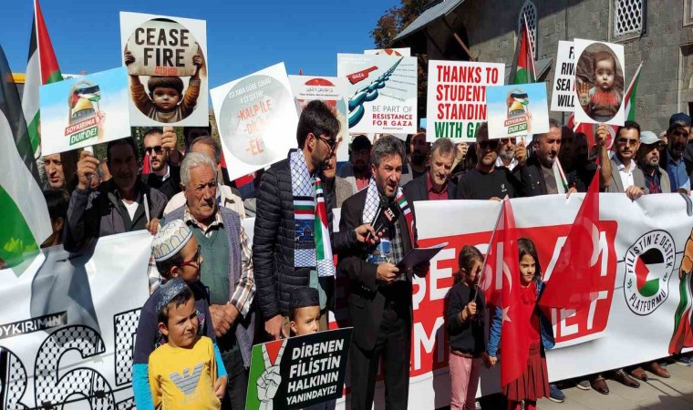İsrail’in Filistin ve Lübnan’a yönelik saldırıları Erzurum’da protesto edildi.