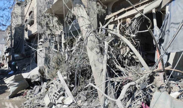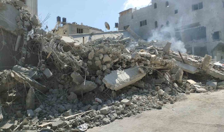 İsrail, ayrım gözetmeksizin Gazze’ye saldırılarını sürdürüyor. İsrail’e ait savaş uçaklarının dün hedef aldığı Gazze’nin merkezindeki Bureij mülteci kampında bulunan harabeye döndü. Park halindeki araçların kullanılamaz hale geldiği, sokakların molozla kaplandığı görüldü.