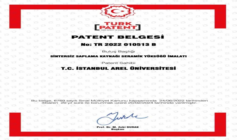 Mühendislik Fakültesi Dr. Öğretim Üyesi Ceren Türkcan, Mühendislik Fakültesi Araştırma Görevlisi Eylem Çağrıcan Gök, Mühendislik Fakültesi Laboratuvar Koordinatörü Engin Huysal ile Alparslan Demirural tarafından geliştirilen ve büyük oranda maliyet tasarrufu sağlayan “Sintersiz Saplama Kaynağı Seramik Yüksüğü İmalatı” tescillenerek patent almayı başardı.