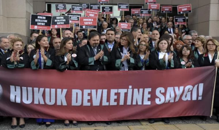Konuşmaların ardından avukatlar "Hukuk devletine saygı" pankartları kaldırdı. (DHA)