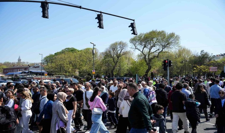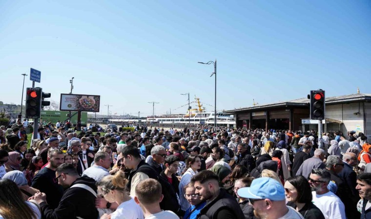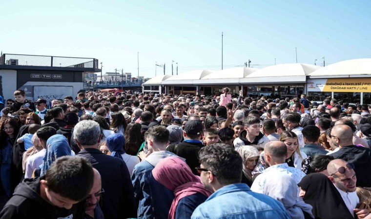 İstanbul’da bayramın son gününde güneşli havayı fırsat bilen vatandaşlar Eminönü’ne akın etti. Zaman zaman vatandaşlar yoğunluk nedeniyle adım dahi atamadı. Kalabalık nedeniyle Sirkeci ve Eminönü’nde vatandaşlar güçlükle yürürken bazı vatandaşların ise uzun kuyrukları beklemeyerek demir korkuluklardan araç trafiğinin olduğu yola atladı. Vapur iskelesi ile tramvay istasyonu arasındaki kalabalık caddeye kadar uzanırken, trafik polislerinin ise araçlar arasında yürüyen yayaları uyarması dikkat çekti.