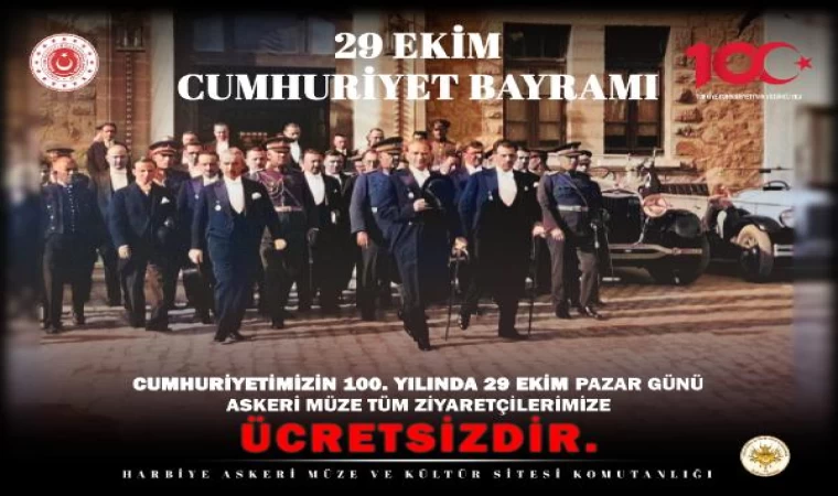 Bakanlık tarafından sosyal medya üzerinden yapılan duyuruda, "Cumhuriyetimizin 100'üncü yılı dolayısıyla İstanbul Harbiye Askerî Müzesini 29 Ekim Pazar günü vatandaşlarımız ücretsiz olarak ziyaret edebilecek. Tüm halkımızı bekliyoruz" denildi. (DHA)