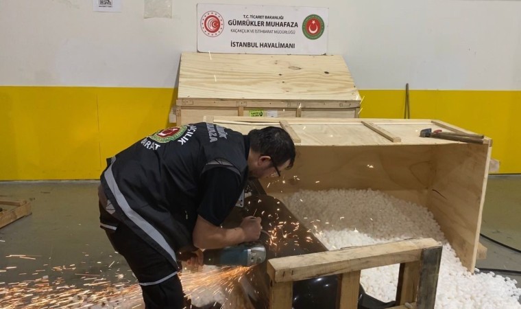 İstanbul Havalimanı Gümrük Muhafaza Kaçakçılık ve İstihbarat Müdürlüğünce, yasa dışı uyuşturucu trafiği ile mücadele faaliyetleri kapsamında yürütülen risk analizi çalışmaları sonucunda, Güney Amerika’dan Asya ülkelerine transit edilmek üzere İstanbul Havalimanı’na ulaşan iki hava kargo gönderisi riskli olarak değerlendirildi. Söz konusu gönderilere yönelik, İstanbul Havalimanı Gümrük Muhafaza Kaçakçılık ve İstihbarat Müdürlüğü NARKOKİM personelince narkotik dedektör köpeklerden de faydalanılarak yürütülen kontrollerde, dedektör köpeklerin her iki kargoya da tepki verdiği görüldü. Detaylı kontrol neticesinde, iki kargo gönderisindeki hava kompresörleri ile ahşap kesme makinesi içerisine gizlenmiş vaziyette toplam 427 kilogram metamfetamin cinsi uyuşturucu madde ele geçirildi. Yakalanan uyuşturucu maddelere ekiplerce el konularak, İstanbul Gaziosmanpaşa Cumhuriyet Başsavcılığı’nca soruşturma başlatıldı.