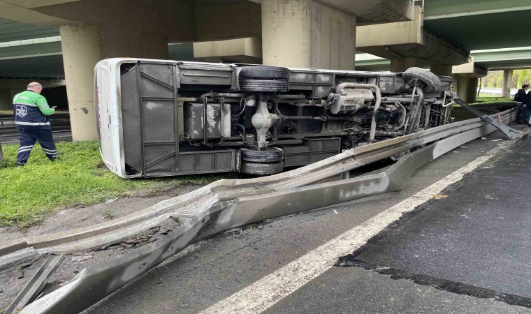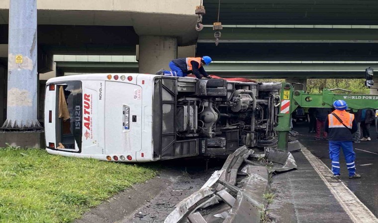 Bahçelievler’de; İstanbul Havalimanı’nda görevli polisleri taşıyan servis minibüsü, yağmurun da etkisiyle kayganlaşan yolda bariyerlere çarparak devrildi. Kazada 6 polis hafif şekilde yaralandı.