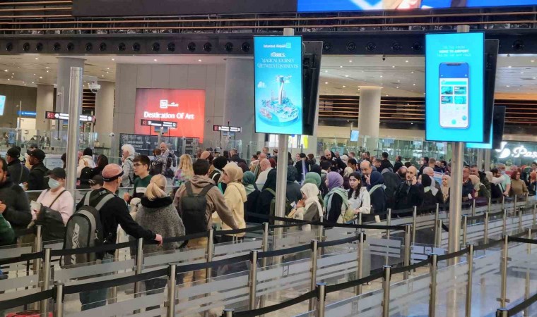 İlk ve orta okullarda eğitim gören öğrenci ve öğretmenler için iki haftalık yarıyıl tatilinin başlamasıyla birlikte sabahın erken saatlerinden itibaren İstanbul Havalimanı’nda zaman zaman yoğunluk yaşandı.