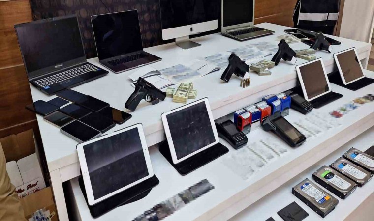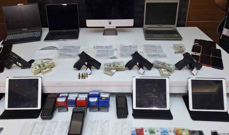 Şüphelilerin ev ve iş yerlerinde yapılan aramalarda ele geçirilen 4 adet ruhsatsız tabanca, 60 bin dolar, 3 adet pos cihazı, 18 adet banka ve kredi kartı, 85 adet slip, 5 gram uyuşturucu olduğu değerlendirilen madde, 10 adet farklı şirketleri ait kaşe, 12 adet farklı şirketlere ait imzalı çek karneleri, 12 adet e-imza USB bellek, 12 adet hard disk, 4 adet tablet, 1 adet bilgisayar kasası ve 20 adet cep telefonu İstanbul Emniyet Müdürlüğünde sergilendi.