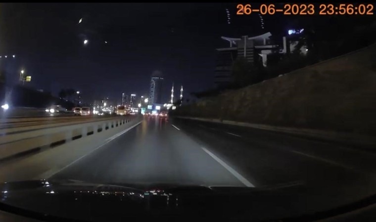 TEM OTOYOLU MAHMUTBEY MEVKİİNDE BİR SÜRÜCÜNÜN ARAÇ KAMERASINA GÖKYÜZÜNDE HIZLA KAYAN BİR CİSİM TAKILDI.