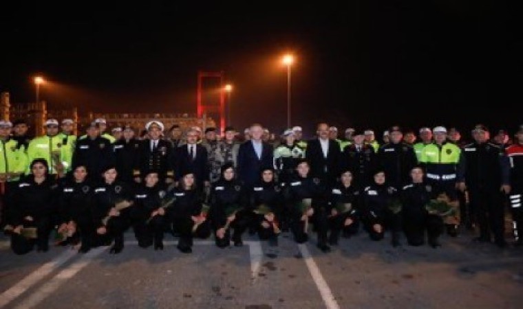 İstanbul Valisi Davut Gül, yılbaşı tedbirleri kapsamında 15 Temmuz Şehitler Köprüsü’nde denetim yapan polis ekiplerini ziyaret etti.