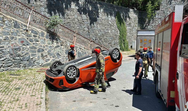 Kağıthane’de kadın sürücü vitesleri karıştırıp gaza asılınca araçla bariyerleri kırarak 4 metreden aşağıya düşüp takla attı. Vatandaşlar tarafından çıkartılan kadının kardeşi gözyaşlarına boğuldu. Hafif yaralanan kadın ambulansla hastaneye kaldırıldı.