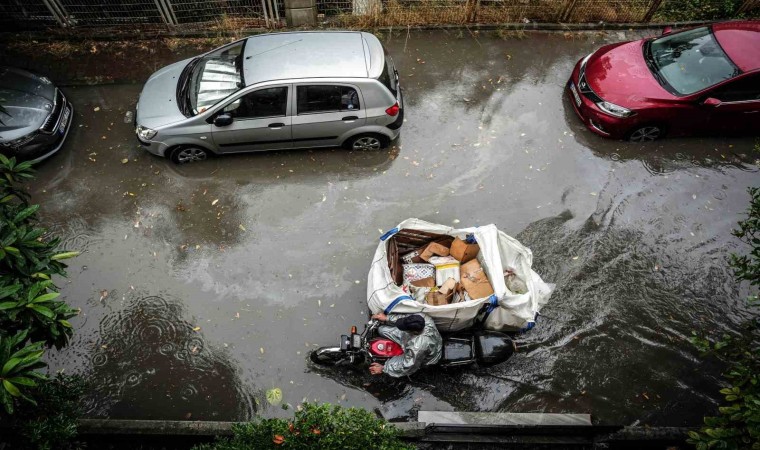 Bakırköy’de aniden bastıran sağanak yağış, hayatı olumsuz etkiledi. Yoğun yağış, cadde ve sokakları adeta göle çevirirken sürücüler ve yayalar zor anlar yaşadı.