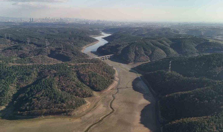 İstanbul’a su sağlayan barajlardaki doluluk oranı yüzde 28,13’e düştü. Su seviyesi 9,37’ye gerileyen Alibey Barajındaki kuraklık havadan görüntülendi.