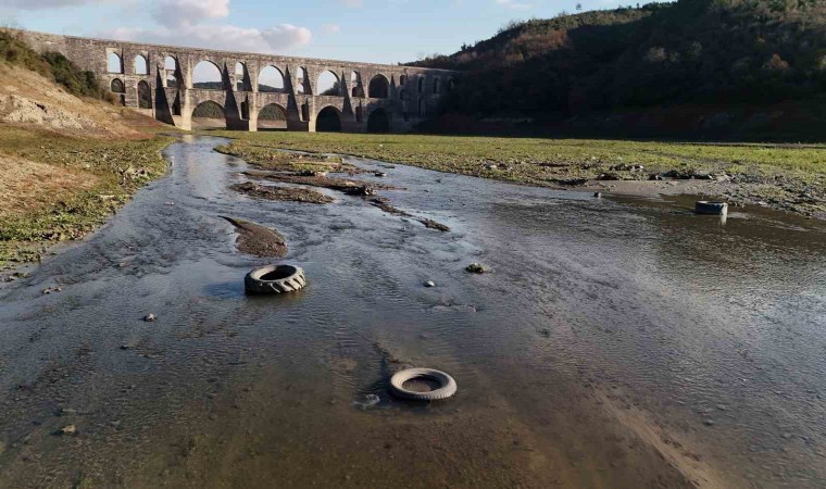 Sıcak yaz aylarının ardından kurak bir sonbahar geçiren İstanbul’da barajlardaki doluluk oranı her geçen gün düşüyor. Mega kentteki barajlarda doluluk oranı İSKİ verilerine göre yüzde 28,13’e geriledi. İstanbul’un en önemli kaynaklarından olan Alibey Barajı’ndaki su seviyesi de düşmeye devam ediyor. Son 10 yılın en düşük su seviyelerini gören Alibey Barajı’ndaki doluluk oranı ise yüzde 9,37 oldu. Alibey Barajında yaşanan kuraklık havadan görüntülendi. Alibey Barajı içerisinde bulunan Kurt Kemeri ve çevresindeki suların çekilmesi sonrası baraja atılan araç lastikleri gün yüzüne çıktı. Barajdaki bazı alanların ise yeşerdiği görüldü.