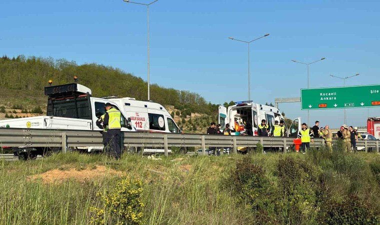 Olay, önceki gün saat 17.00 sıralarında Kuzey Marmara Otoyolu Beykoz Anadolu Feneri Mahallesi mevkisinde meydana geldi. Edinilen bilgiye göre bayram ziyareti sonrasında Kocaeli’ne hafif ticari araçla dönüşe geçen Murat D. (29), eşi Büşra D. (27), baldızı B.A. (21), kayınvalidesi Ayşe Ateş (57) ve 3 yaşındaki bebeği D.D. ile yola koyuldu. Aracın şoförü Murat D., otoyolda seyrettiği esnada lastiği patladı. Sürücüsünün direksiyon hakimiyetini kaybetmesi sonucu kontrolden çıkan araç, yol kenarından çalılık alana doğru yaklaşık 250 metre sürüklendi. Araç ardından takla atarak şarampole yuvarlandı. Yaklaşık 50 metre derinliğe uçan araç devrilerek yan yattı.
