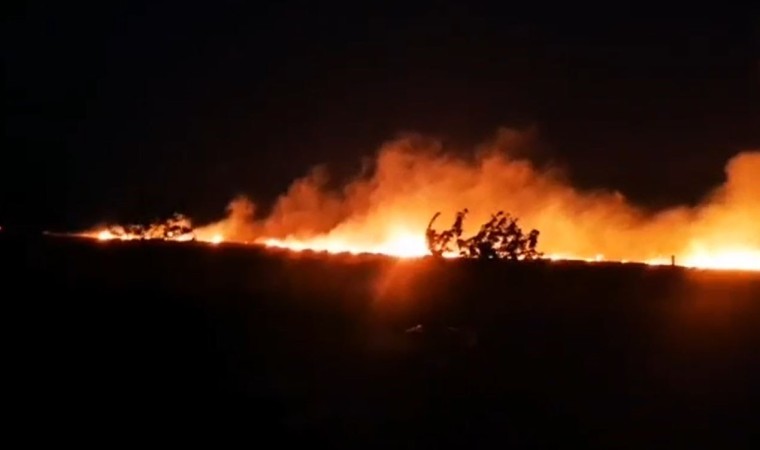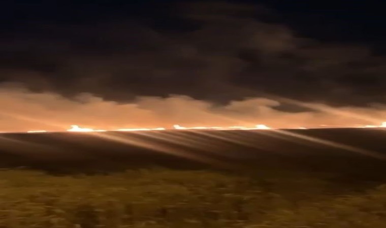 İstanbul’un Çatalca ilçesinde buğday tarlasında çıkan yangına ekipler müdahale ediyor.