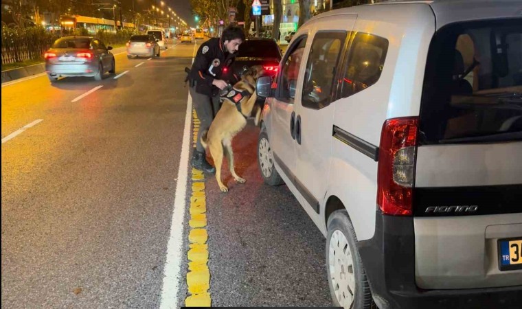 İstanbul’da düzenlenen huzur uygulamasında narkotik köpeği araçları didik didik aradı. Usulsüz çakar kullanımından bir sürücüye 4 bin 64 TL ceza yazıldı.