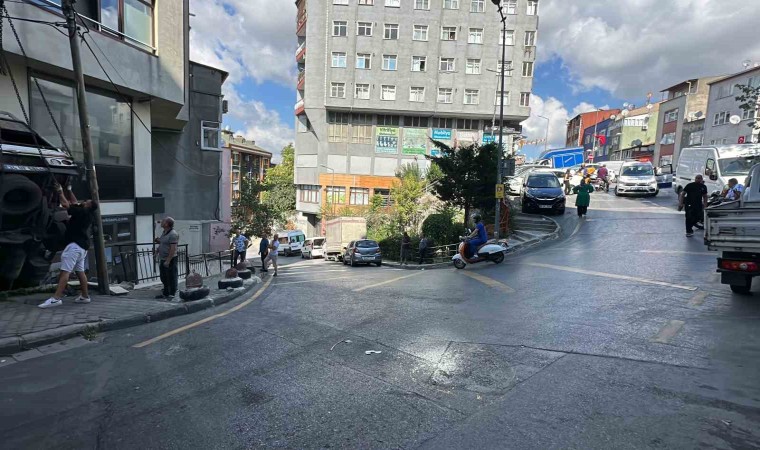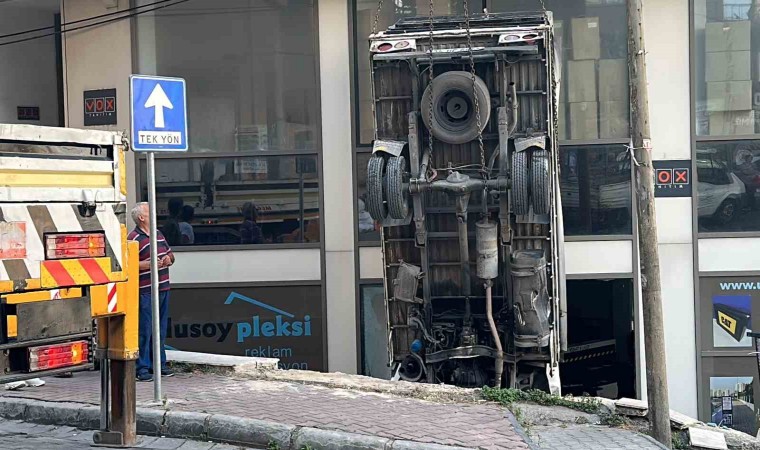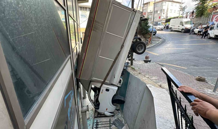 Kağıthane’de yokuş aşağıya indiği esnada gaz pedalı takılı kalan kamyonet, kontrolden çıkarak korkulukları kırıp bina boşluğuna uçtu. Bir iş yerine çarpan kamyonet, bir motosiklete de zarar verdi. Ortalığın adeta savaş alanına döndüğü korku dolu anlar ise kameralara yansıdı.