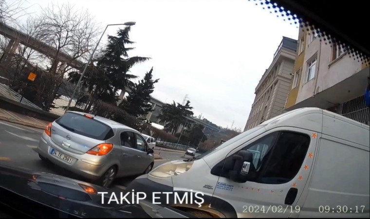 Kağıthane’de bir sürücü, sokaklara dönüş yaparken sinyal vermeyen kadın sürücüyü selektör yaparak uyardı. Bu durumdan rahatsız olan kadının eşi ise selektör yapan sürücüyü takip ederek evinin önünde tehdit etti. Yaşananlar kameralara yansıdı.