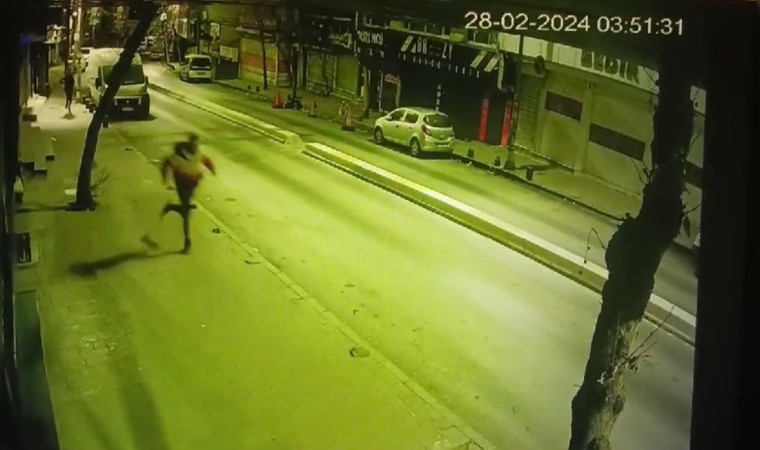Şahıs ardından karşı sokaktaki evine girip silahını aldıktan sonra hızlıca çıktı. İçkisini ödediği adamın peşinden koşan şahıs ile adam arasında bu kez de kovalamaca başladı. Adamın arkasından silahla ateş açan şahıs onu yakaladıktan sonra yere düşürüp dakikalarca darbetti. Olay sonrası şahıs silahıyla birlikte olay yerinden hızla uzaklaştı. Dehşet anları ise kameralara anbean yansıdı. Olayın ardından yaralanan adam da bir süre sonra olay yerinden ayrıldı. Taraflar ise birbirlerinden şikayetçi olmadı.