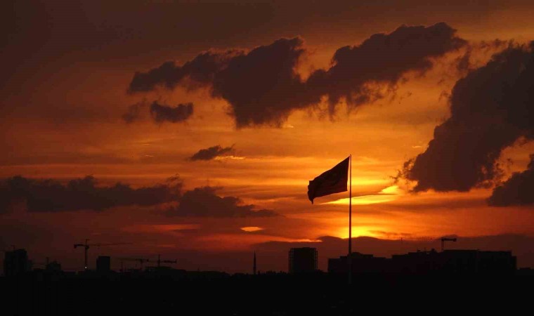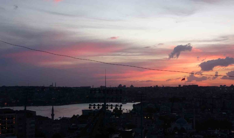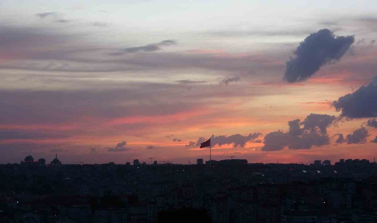 İstanbul’da gün batımında gökyüzü ve Türk bayrağının kartpostallık manzarası görenleri hayran bıraktı. Vatandaşlar o anları görüntülemek için telefonlarına sarıldı.