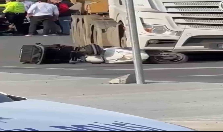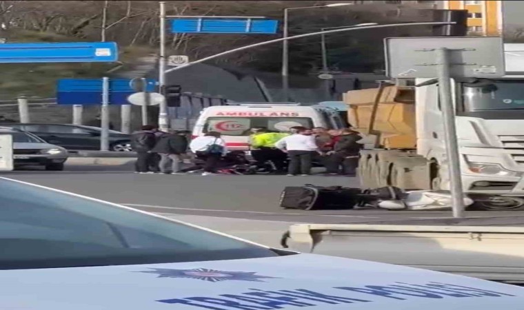 Kağıthane’de seyir halinde olan hafriyat kamyonu sürücüsü, yanından geçmek isteyen motosikletli kuryeye çarptı. Feci kaza kameralara yansırken, kamyonun ezdiği motosikletin üstündeki genç kurye yola atlayarak son anda kurtuldu.