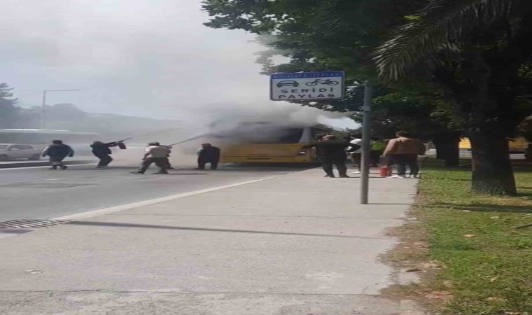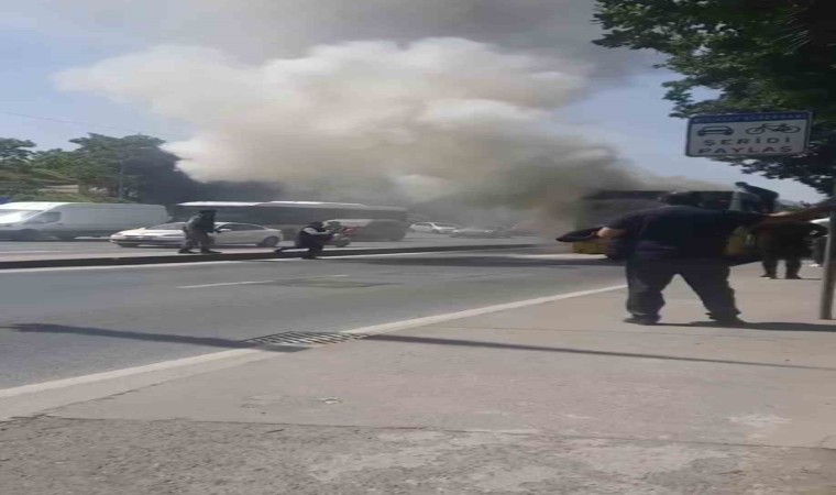Kağıthane’de içerisinde yolcu olan seyir halindeki İETT otobüsünün motorunda yangın çıktı. Vatandaşların panik yaşadığı olayda, otobüse çevredeki vatandaşlar yangın söndürme tüpüyle müdahale etti. Yaşanan hareketli anlar kameralara yansırken, sürücüler gökyüzünü kaplayan duman nedeniyle ilerlemekte zorlandı.