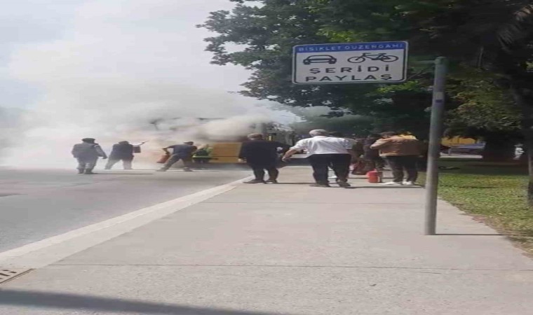 Kısa sürede gelen itfaiye ekibi yangını kısa sürede söndürürken, araç ise kullanılamaz hale geldi. Yaşanan hareketli anlar kameralara yansırken, sürücüler gökyüzünü kaplayan duman nedeniyle ilerlemekte zorlandı. Polis ve itfaiye ekibi yangınla ilgili soruşturma başlattı.