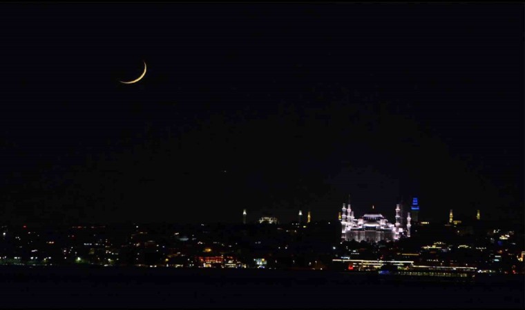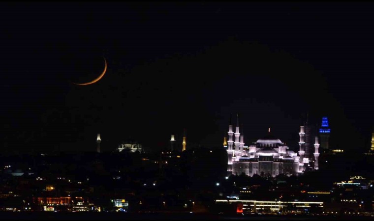 İstanbul’da dün gece ortaya çıkan hilal, Sultanahmet Camii, Ayasofya-i Kebîr Câmi-i Şerîfi ve Beyazıt Yangın Kulesi üzerinde eşsiz bir görüntü oluşturdu. Kameralara yansıyan Sultanahmet Camii ile hilal buluşması seyirlik bir görüntü oluşturdu. Hilalin, Sultanahmet Camii üzerinden batışı yaklaşık 5 dakika sürdü. İstanbul’un Kadıköy ilçesi sahilinde objektiflere yansıyan görüntü, görenleri hayran bıraktı.