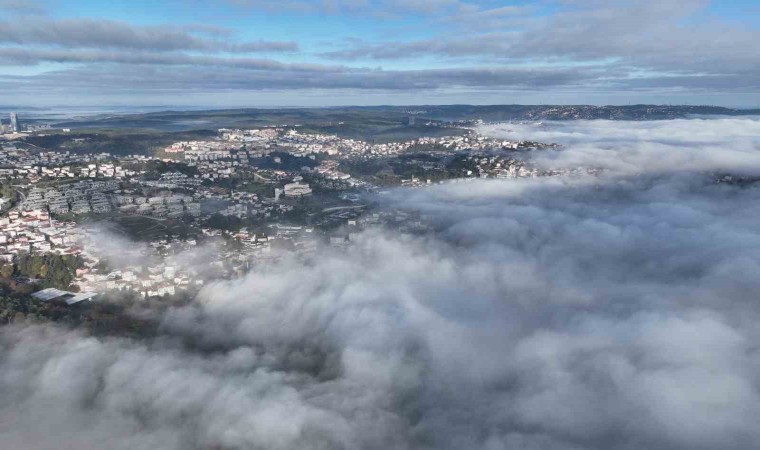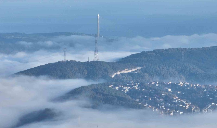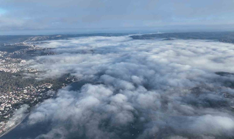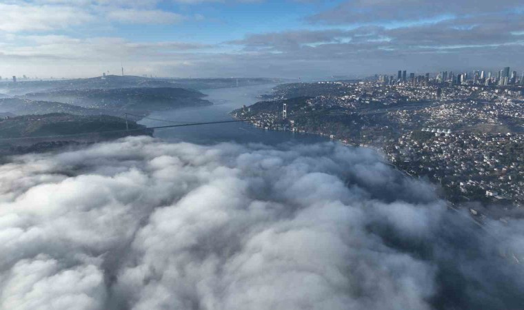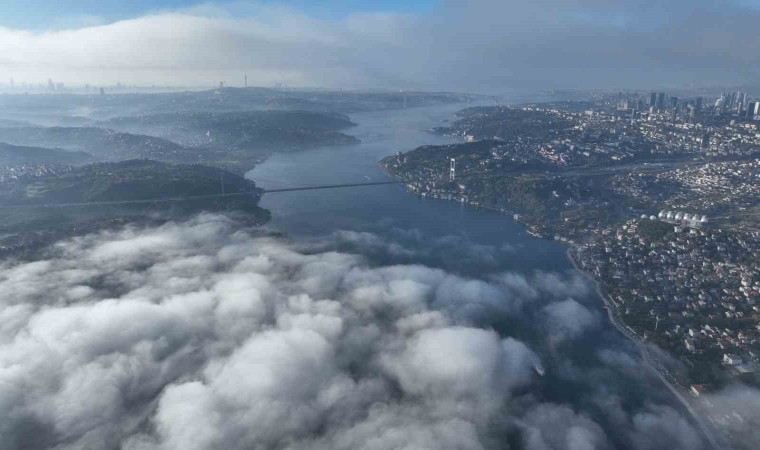 İstanbul’da sabah saatlerinde sis etkili oldu. Anadolu ve Avrupa arasında daha fazla etkisini gösteren yoğun sis, ormanlık alanı da kapladı. Fatih Sultan Mehmet köprüsünün de kısmen gözden kaybolmasına neden olan sis bulutları ortaya muhteşem görüntüler çıkardı. Havadan çekilen o anlar kartpostallık görüntüler oluşturdu. Sis bulutları arasından süzülen güneş ışıklarının da ortaya çıkardığı eşsiz manzara dron kamerasına yansıdı.