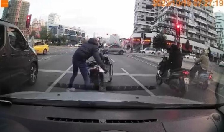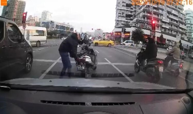 Kağıthane’de bir motosiklet sürücüsü, kırmızı ışıkta durduğu esnada aracının arka plakasını sökerek yoluna tek tekerlek üzerinde devam etti. İddiaya göre ceza yememek için bu yöntemi uygulayan sürücüyü, trafikte bulunan başka bir aracın kamerası anbean kaydetti.