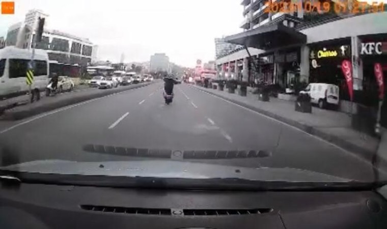Edinilen bilgiye göre olay geçtiğimiz ay Kağıthane Cendere Caddesi’nde bulunan kırmızı ışıklarda meydana geldi. Motosikletiyle kırmızı ışıklarda duran bir sürücü, aracından inerek arka plakasını söktü. Ardından yeşil ışığın yanmasıyla motosikletinin önünü kaldıran sürücü, tek tekerlek üzerinde motosiklet kullandı. Kameralara yakalanmamak adına bu yöntemi kullanan sürücü, trafikte yaptıklarıyla hem kendi hem de diğer vatandaşların canını tehlikeye attı. O anlar trafikte bulunan bir başka aracın kamerasına saniye saniye yansıdı.