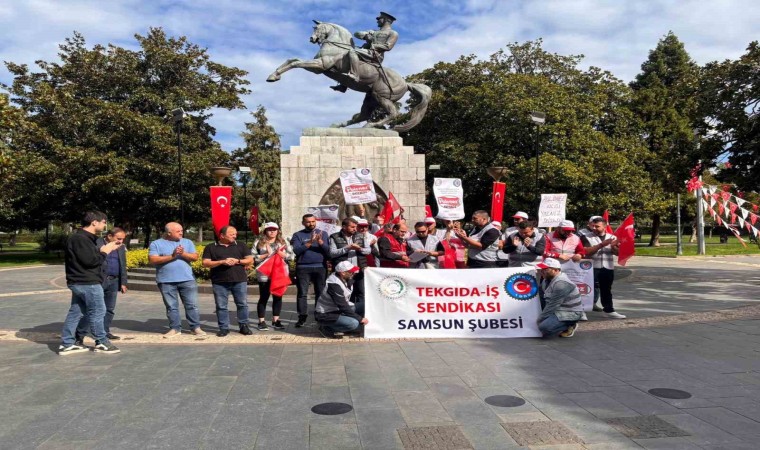 Samsun’da Tekgıda-İş Sendikası üyeleri, İstanbul’da sendika üyeliği gerekçesiyle işten çıkarılan gıda işçileri için basın açıklaması yaptı.