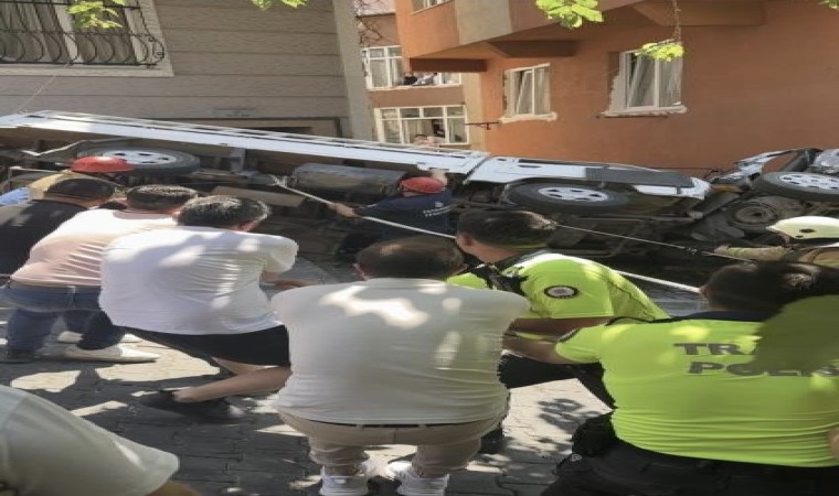 Ancak şoför kapısının bina boşluğuna açılması nedeniyle sürücü çıkartılamayınca bu kez de kamyonet halatlarla bağlanmıştı. Halatlarla demir korkuluklara tutturulan kamyonet, vatandaşlar ve polis ekiplerinin yardımıyla doğrultulduktan sonra itfaiye ekipleri şoför kapısını açabilmişti. Ardından sürücü sıkıştığı yerden çıkartılarak sedyeye konulmuştu. Vatandaşlar tarafından ambulansla taşınan yaralı Nur U., hastaneye kaldırılarak tedavi altına alınmıştı. Yaşanan kazanın güvenlik kamera görüntüleri ortaya çıktı.